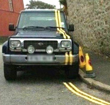 공개된 사진에는 도로에 불법 주차된 자동차에 노란 색으로 두 줄이 그어져 있다.