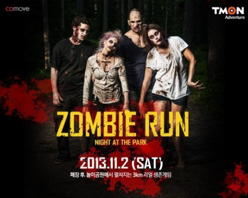 21일 소셜커머스 티켓몬스터에서 진행한 ‘좀비런(Zombie run)’ 3차 티켓이 조기 판매 완료 됐다. 이는 ‘좀비런’에 대한 누리꾼들의 뜨거운 관심을 반증하는 것이기도 하다.