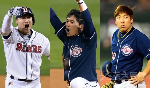 두산 홍성흔-이종욱-김현수(왼쪽부터). 스포츠동아DB
