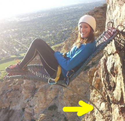 이 의자는 두 개의 철골 프레임을 바위에 고정시킨 채 등반용 로프를 엮어 만든 것으로 공개된 사진에는 이 남성의 여자친구가 의자에 편히 누워 카메라를 바라보고 있는 모습이 담겨 있다.