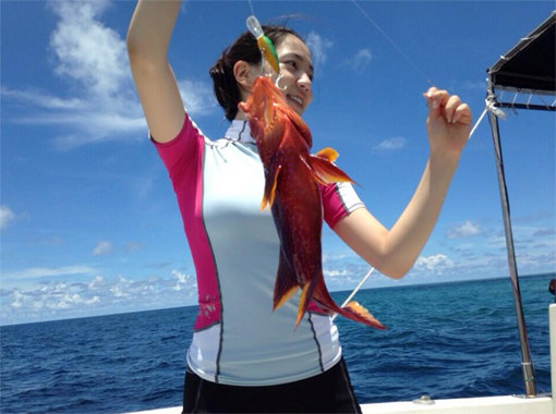 공개된 사진 속 화영은 바다에서 낚은 물고기를 들어 보이고 있다. 특히, 화영의 환한 미소가 눈길을 끌었따.
