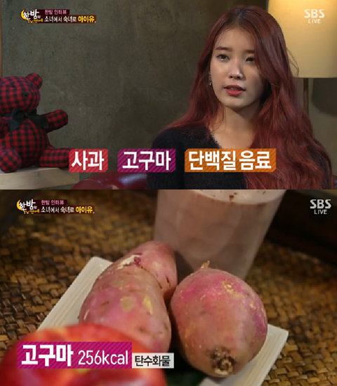 지난 23일 방송된 SBS ‘한밤의 TV연예’에 출연한 아이유는 자신의 식단을 공개했다.