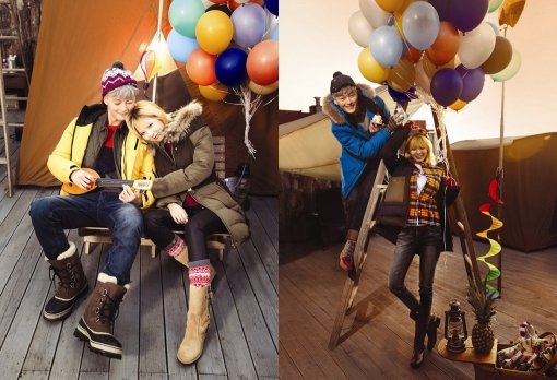 또 톤 다운된 컬러 패딩점퍼에는 도톰한 비비드컬러 머플러로 포인트를 주었는데 연인으로 호흡을 맞춘 남성 모델도 같은 컬러의 체크 셔츠를 선택해 통일감을 주며 세련된 커플룩을 보여줬다.