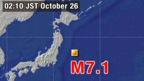 일본 기상청 26일 새벽 2시10분 발표에 의하면 일본 후쿠시마 북쪽 미야기현 오사카군 동남쪽 290km 떨어진 해역에서 리히터규모 7.1의 지진이 일어났다.