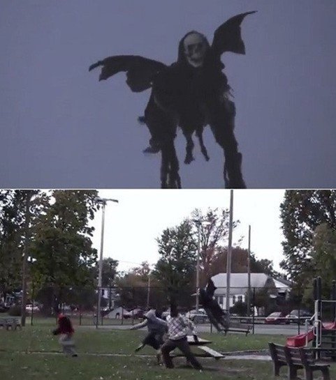 이는 미국의 코미디언 톰 메이브(Tom Mabe)가 할로윈 데이를 기념해 만들었다고 알려졌다. 이 저승사자는 하늘을 날 수 있도록 프로펠러가 달려 있고 원격으로 조종된다.