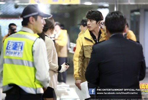 공개된 ‘정용화 지하철’ 사진 속에는 노란색 아웃도어 점퍼를 입은 정용화가 경찰과 사람들 사이로 심각한 표정을 짓고 있는 모습이 담겨 있다.