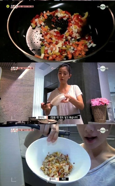 이날 냉장고를 살피던 클라라는 닭가슴살과 파프리카 등을 넣은 볶음밥을 메뉴로 결정했다. 프라이팬을 꺼내 직접 요리에 나선 클라라는 밥의 양을 반공기 정도로 매우 적게 넣어 눈길을 끌었다.