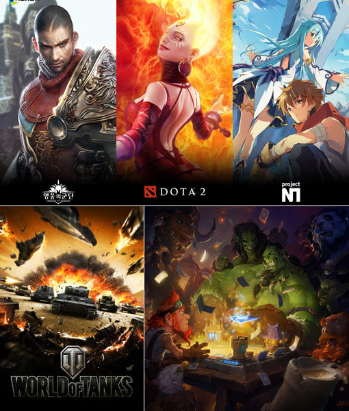 11월 국내외에서 다양한 게임 관련 행사가 열려 게이머들의 이목이 집중되고 있다. (위부터 시계방향으로)넥슨이 지스타에서 선보이는 ‘영웅의 군단·도타2·페리아연대기’, 블리자드의 신작 ‘하스스톤’, 워게이밍의 ‘월드 오브 탱크’.