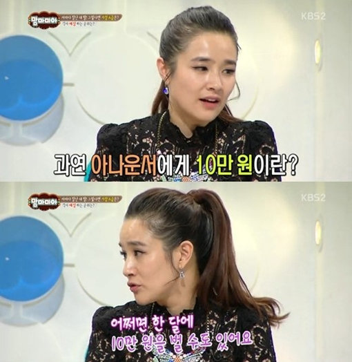 김보민은 “아나운서에게 10만 원이란 무엇이냐”는 질문에 “어쩌면 한 달에 10만 원을 벌 수도 있다”고 대답했다.