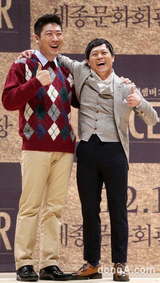 뮤지컬 배우 김대종(왼쪽)과 임기홍이 31일 오후 서울 종로구 세종문화회관에서 열린 뮤지컬 ‘디셈버 : 끝나지 않은 노래’쇼케이스에서 포토타임을 하고 있다.