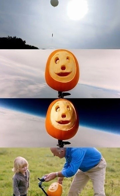 이들은 헬륨을 채운 대형 풍선에 호박을 매달아 우주로 보내는 데 성공했다. 이 호박의 여행은 30km 상공까지 이어진 뒤 풍선이 터지면서 끝난다.
