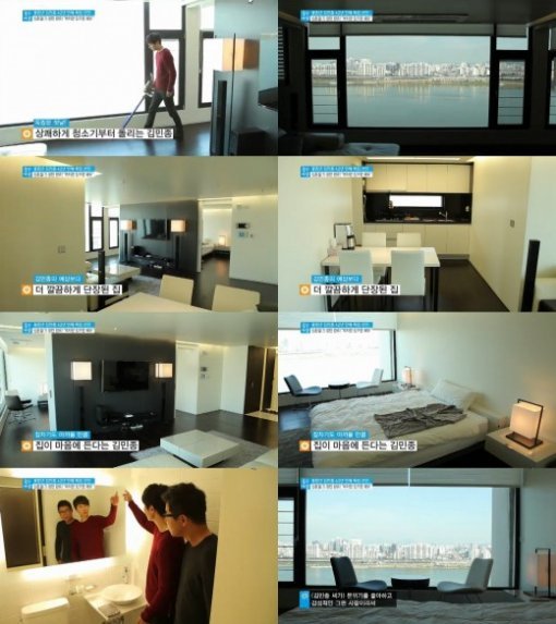 공개된 김민종의 집은 한강이 한눈에 내려다 보이는 전망을 자랑했다. 전체적으로 화이트 톤의 깔끔한 느낌을 자랑하는 김민종의 싱글 하우스는김민종의 절친인 양진석의 작품이다.