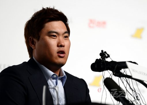 류현진이 1일 서울 쉐라톤 그랜드 워커힐 호텔 워커힐 시어터에서 열린 입국 공식 기자회견에서 취재진의 질문에 답하고 있다. 김민성 기자 marineboy@donga.com 트위터 @bluemarine007