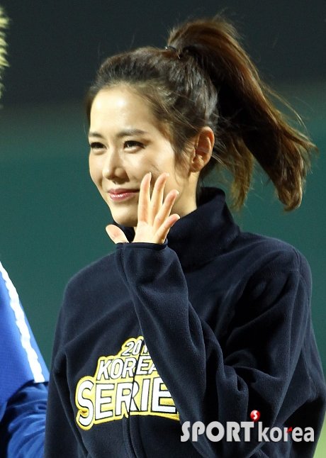 1일 오후 대구 시민야구장에서 열린 ‘2013 한국 야쿠르트 세븐 프로야구’ 삼성 라이온즈와 두산 베어스의 한국시리즈 7차전 경기에서 배우 손예진이 시구를 한 후 관중들에게 손인사를 하며 퇴장하고 있다.
