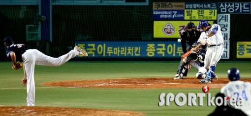 ‘2013 한국야쿠르트 세븐 프로야구’ 삼성 라이온즈와 두산 베어스의 한국시리즈 7차전이 1일 오후 대구 시민야구장에서 열렸다. 6회말 1사 ,3루에서 삼성 박석민이 2타점 2루타를 치고 있다.