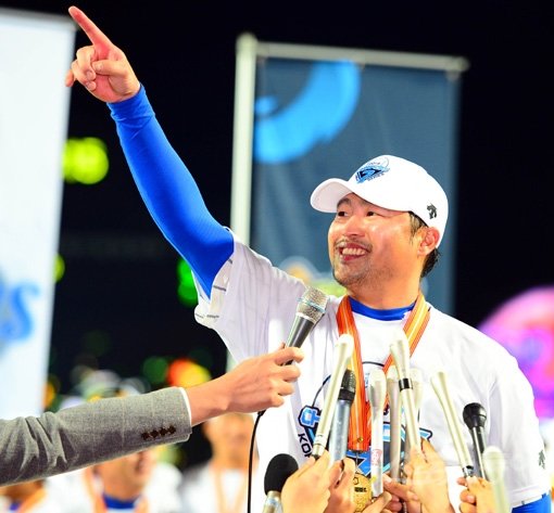 1일 저녁 대구 시민야구장에서 열린 2013프로야구 삼성과 두산의 한국시리즈 7차전에서 삼성이 7-3으로 승리를 거두며 챔피언에 올랐다. MVP를 수상한 박한이가 세리머니를 하고 있다. 대구|박화용 기자 inphoto@donga.com 트위터 @seven7sola
