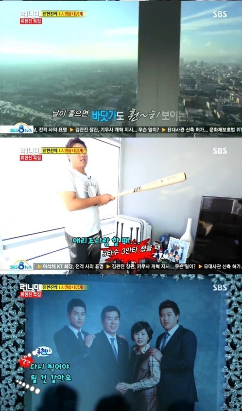 류현진은 3일 방송된 SBS ‘일요일이 좋다-런닝맨’에 출연해 자신의 집을 보여줬다.