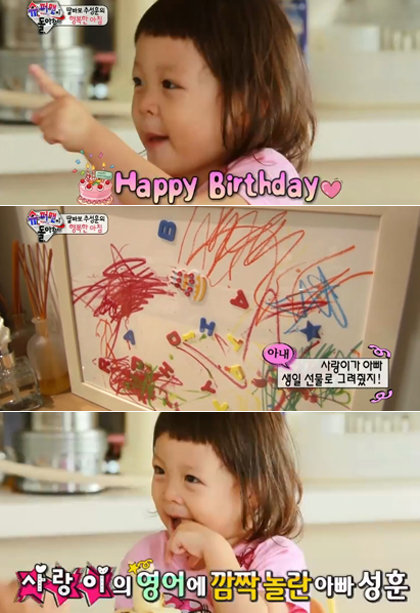 이어 추사랑이 자신이 직접 그린 추성훈의 생일 선물을 가리키며 “Happy birthday(생일 축하해)”라고 외쳤다.