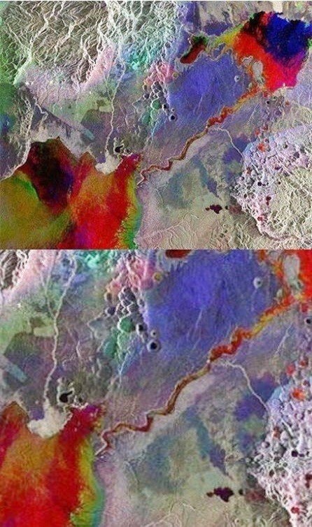 공개된 ‘지구가 갈라지는 곳’ 사진은 우간다 서부 지역을 찍은 위성사진 세 장을 합성해 만든 것이다.