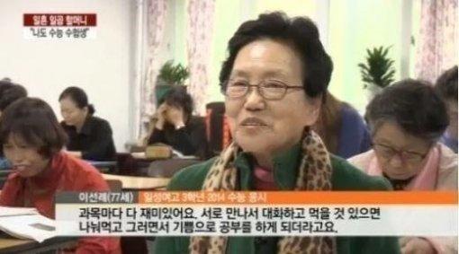 오는 7일 치러지는 2014학년도 대학수학능력시험(이하 수능) 최고령 응시생은 서울 마포구 일성 여자 중·고등학교 3학년 이선례 씨(77)인 것으로 밝혀졌다.