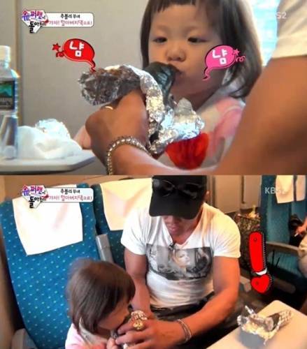 특히 추사랑은 배가 고팠는지 자신의 입보다 훨씬 큰 김밥을 한입에 넣기도 하고 김밥 옆구리를 뜯어먹는 등 ‘폭풍 먹방’을 선보여 눈길을 끌었다.