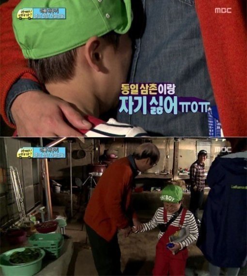 미션을 들은 윤후는 “김성주 삼촌이랑 잤으면 좋겠다. 성동일 삼촌만 아니면 된다”고 말했지만 장난기가 발동한 윤민수가 윤후를 일부러 성동일의 집에 데려가 “성동일 삼촌과 자야 한다”고 말했고 윤후는 놀라 눈물을 펑펑 흘렸다.