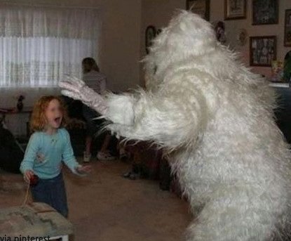 공개된 사진 속 아빠는 설인 같은 흰 털복숭이 의상을 입고 딸을 놀라게 하는 모습이 담겨 있다.