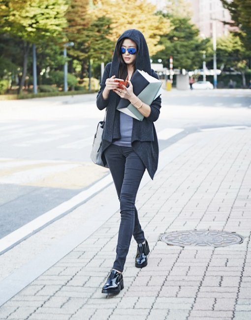 공개된 사진에는 전지현이 블랙 톤의 캐주얼한 차림에 투 지퍼 포켓이 포인트인 회색 가방을 매치한 모습이 담겨 있다.