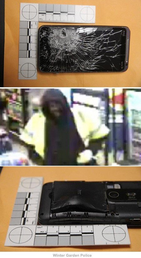 공개된 ‘총탄 막은 스마트폰’은 미국 플로리다 주 올랜도에 위치한 주유소 편의점에서 일어난 사건의 부산물이다.