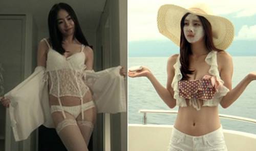 한수아는 셔츠를 탈의하고 파격적인 란제리 입은 채 남자를 유혹하고 있는 모습을 담은 사진과