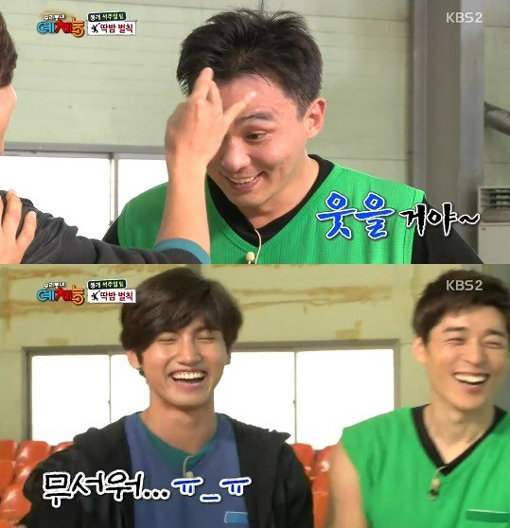 최강창민은 이날 다리 부상으로 연습경기에 참여하지 못했지만 우지원팀 소속 이혜정을 대신해 딱밤 벌칙에 나섰다.