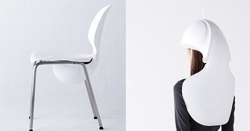 공개된 사진에는 주위에서 흔히 볼 수 있는 평범한 의자의 모습이 담겨 있다. 그러나 이 의자는 다리 떼어내고 헬멧 부분을 머리에 쓰면, 어깨와 등을 보호할 수 있는 헬멧으로 변신한다.