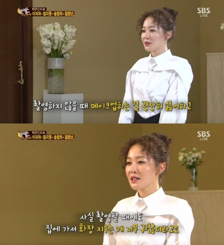 엄지원은 6일 방송된 SBS ‘한밤의 TV연예’에 출연해 평소 민낯을 고수하는 이유를 밝혔다.