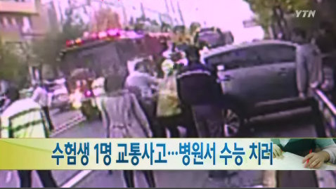 수능 시험장 앞에서 교통사고가 나 수험생 1명이 병원에서 시험을 치르고 있다.