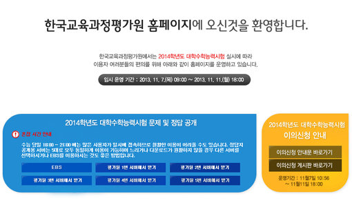 한국교육과정평가원은 안내문을 통해 “수능 당일(7일) 18:00~21:00에는 많은 사용자가 일시에 접속해 원활한 이용이 어려울 수도 있다”고 덧붙였다.