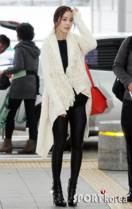 배우 김태희가 6일 오후 인천 국제공항에서 시크한 공항패션을 선보여 팬들의 눈길을 끌었다.