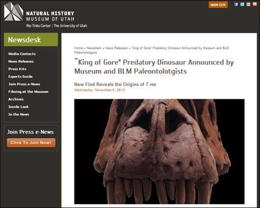 사진출처|‘신종 육식공룡 화석’ 미국 유타 자연사박물관 홈페이지 캡처