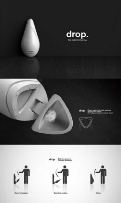 공개된 사진들에는 물방울 형태를 한 변기의 모습을 담겨 있다. 이 특이한 모양의 변기는 사람의 손짓을 인식해 소변기와 좌변기 등 다양한 모양으로 변해 놀라움을 자아낸다.