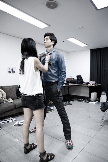 공개된 ‘공유 매너다리’ 사진에는 광고 촬영 현장에서 공유가 자신의 의상을 준비해주는 스태프를 위해 다리를 벌려 키를 맞춰주고 있는 모습이 담겨 있다. 공유는 키가 작은 여성 스태프가 불편하지 않도록 다소 민망한 포즈로 매너를 발휘하고 있다.