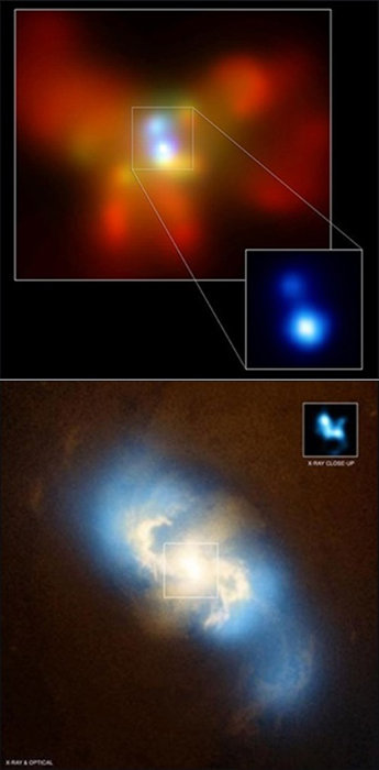 우리나라 연구팀이 참여한 국제 공동연구진은 최근 45억 광년 떨어진 은하 중심부에서 ‘쌍둥이 블랙홀’을 발견했다.