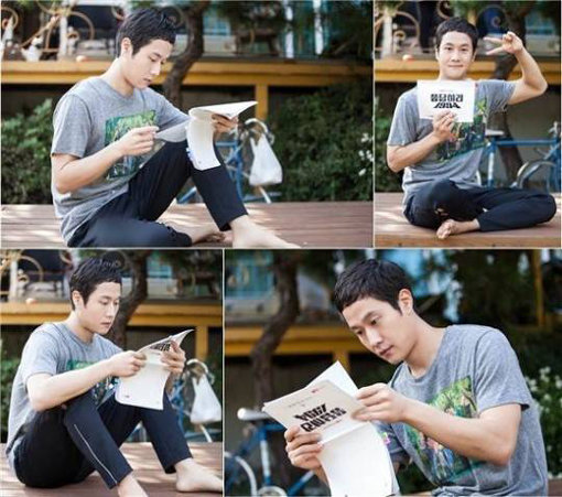 공개된 촬영장 사진에서 정우는 맨발에 편안한 트레이닝복 차림으로 대본에 집중하고 있다. 특히 대본 연습 중 자신을 찍고 있는 카메라를 발견하고는 브이 포즈를 취해 보이며 훈훈한 오빠 미소를 선보여 시선을 모은다.