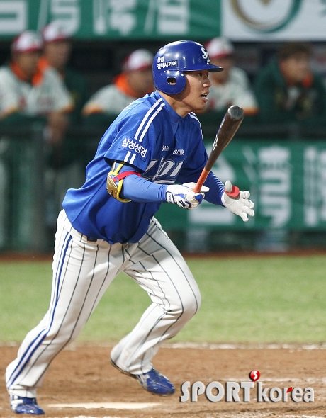 ‘2013 아시아시리즈’ 삼성 라이온즈와 대만 퉁이 세븐일레븐 라이온즈의 예선 A조 경기가 17일 오후 대만 타이페이 타오위안구장에서 열린다. 연장 10회초 2사 2루에서 삼성 우동균이 1타점 재역전 적시타를 치고 있다.