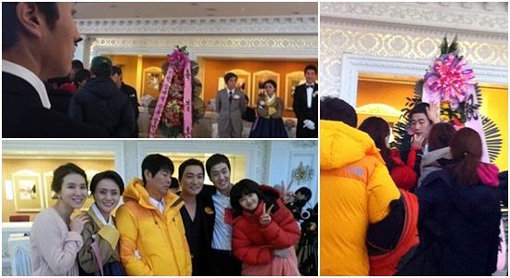 공개된 사진에는 정우를 비롯해 고아라, 성동일, 이일화 등의 모습이 담겨 있다. 이는 극 중 쓰레기(정우 분)의 형 결혼식 현장 모습이다. 특히 사진 속 화환에는 ‘신랑 김재석-신부 성안나 축 결혼’이라는 글귀가 눈길을 끈다.