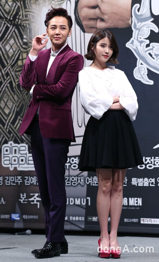 배우 장근석, 아이유가 18일 오후 서울 강남구 임피리얼팰리스호텔에서 열린 KBS 새 수목드라마 ‘예쁜 남자’ 제작발표회에서 포토타임을 하고있다.