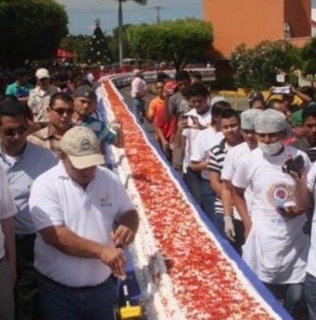 이 503m 과일 파이를 만들기 위해 니카라과의 수도 마나과에선 5개 블록에 걸쳐 테이블을 설치했다. 또 달걀 6만 개, 밀가루와 설탕 65자루, 마가린 320상자, 설탕에 절인 과일 양동이 75개 분량, 딸기 100상자 등이 재료로 사용됐다.