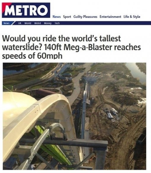 영국 메트로는 19일(이하 현지시간) 보도에 따르면 미국 캔자스 주 캔자스시티의 쉴리터밴 워터파크에는 높이 140피트(약 43m) 워터슬라이드가 내년 5월 개장을 목표로 건설 중이다.
