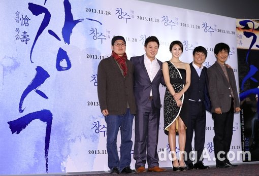 이덕희 감독(왼쪽)과 배우 정성화, 손은서, 임창정, 안내상이 21일 오후 서울 성동구 왕십리 CGV에서 열린 영화 ‘창수’ 언론시사회에서 포토타임을 하고있다.