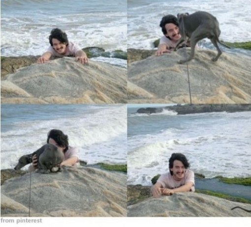공개된 ‘상황을 오해한 개’ 사진에는 한 남성이 절벽에 매달려 금방이라도 떨어질 듯 고통스러운 표정을 짓고 있다. 이 모습을 본 ‘상황을 오해한 개’는 곧바로 달려와 남성을 구하기 위해 온힘을 다했다.