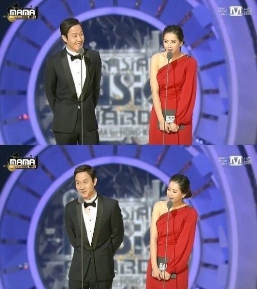이날 고아라가 배우 정우와 함께 시상자로 등장해 영어로 정우를 소개했다.