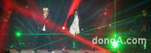 그룹 틴탑이 23일 오후 서울 어린이대공원 돔아트홀에서 열린 한류문화 공연 ‘와팝(WAPOP·World & Asia+WOW POP)’콘서트에서 화려한 공연을 펼치고 있다.